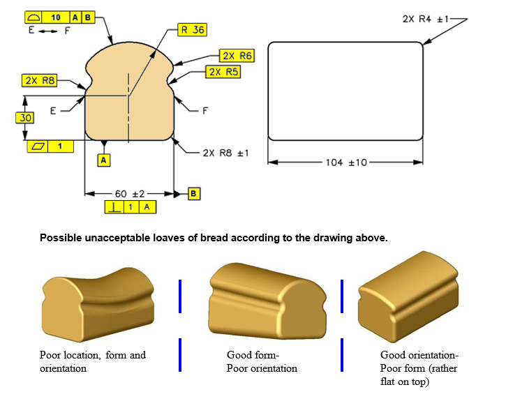 Although this Tip was about loaves of bread, we have had many customers with parts that required similar controls. Composite profile of a surface is the only way to clearly define these requirements.