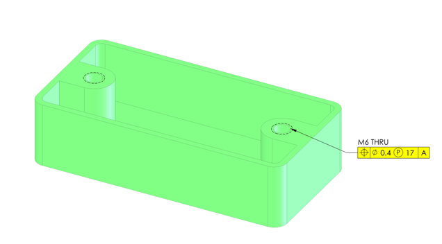 The Projected tolerance zone modifier is generally used for threaded holes and holes that will receive a pin (usually a press fit) and the designer is concerned that the screw or pin projecting from the hole might interfere with the surface of the clearance hole in the mating part. In these cases, it is more important to know where the stud or fastener will be rather than where the hole or tapped hole is [Y14.5-2018 Para 10.4.1.2].