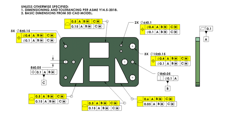 In accordance with ASME Y14.5M-1994, ASME Y14.5-2009 & ASME Y14.5-2018