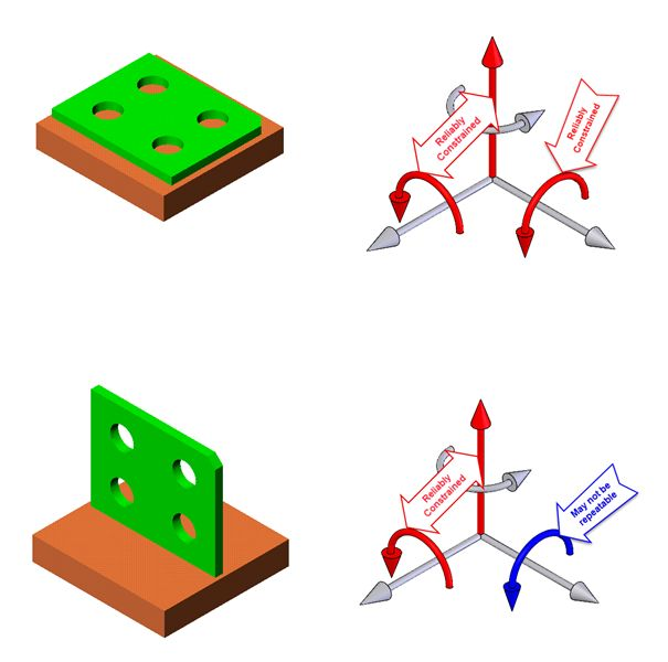 Fig 1: Datum feature A is a stable primary datum feature: All 3 degrees of freedom are reliably constrained.
