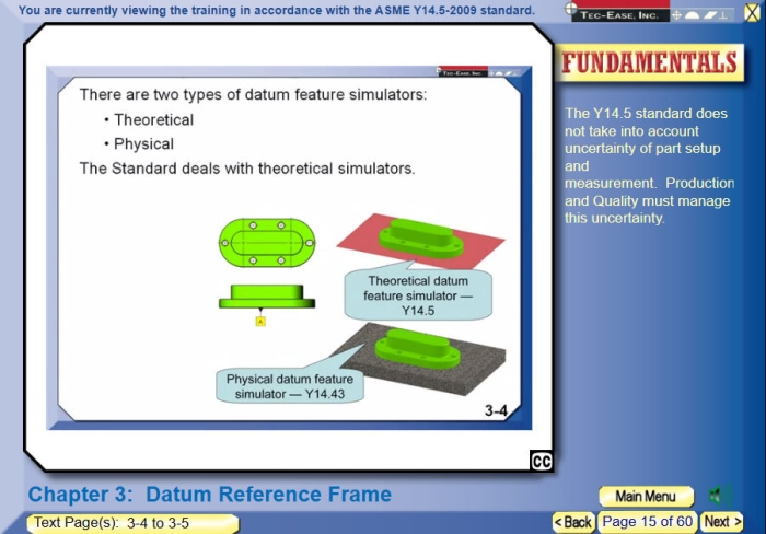 Most programs and books on GD&T are considered dry and long. The GD&T Hierarchy Coach is not that! Tec-Ease, Inc. has worked hard in its development to help students of GD&T learn concepts the first time! It follows the same instruction technique used in Don's books, GD&T Tips and live presentations. It is geared towards many learning styles and is not only designed to assist a student in understanding GD&T concepts but also helps with information retention by providing application and inspection examples, full color 3D graphics, fun animations, quizzes and a little pointed humor. Tec-Ease, Inc. courses earn registered continuing education credits.