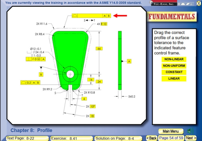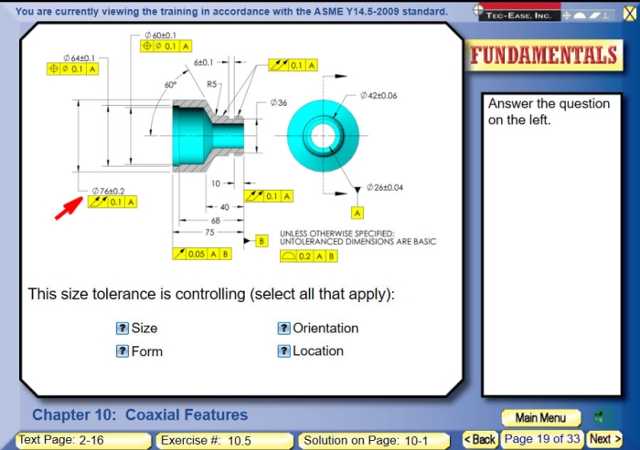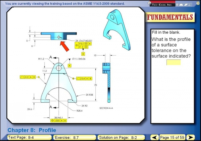 Fundamentals of GD&T personal training software based on Don Day's The GD&T Hierarchy Textbook, ASME Y14.5-2009 version with coverage of former practices in ASME Y14.5M-1994.